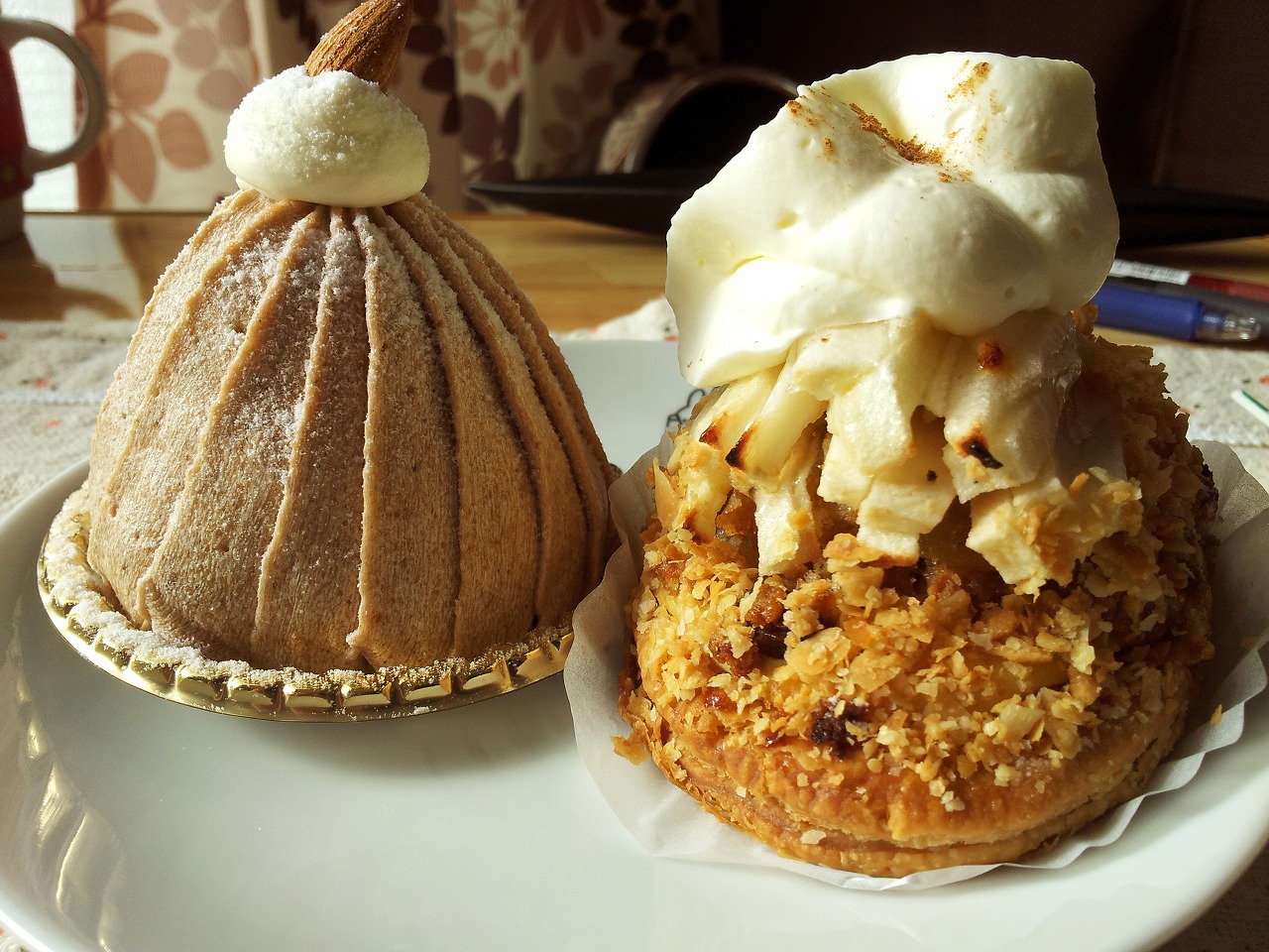 <モンブラン(写真左:360円)とアップルパイ(写真右:360円)>