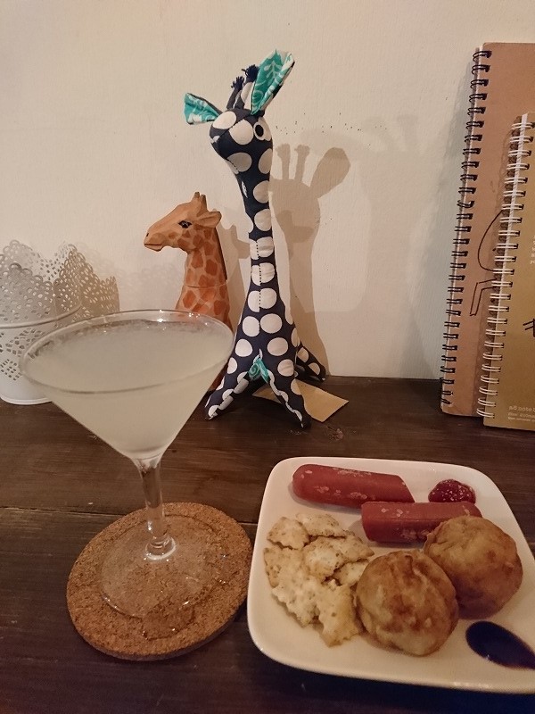 本日の一杯目はギムレット。ジンとライムジュースを合わせたカクテルです。