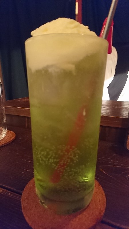 ということで注文したのは、メロンリキュールBOLSと三ツ矢サイダーを使ったクリームソーダ。