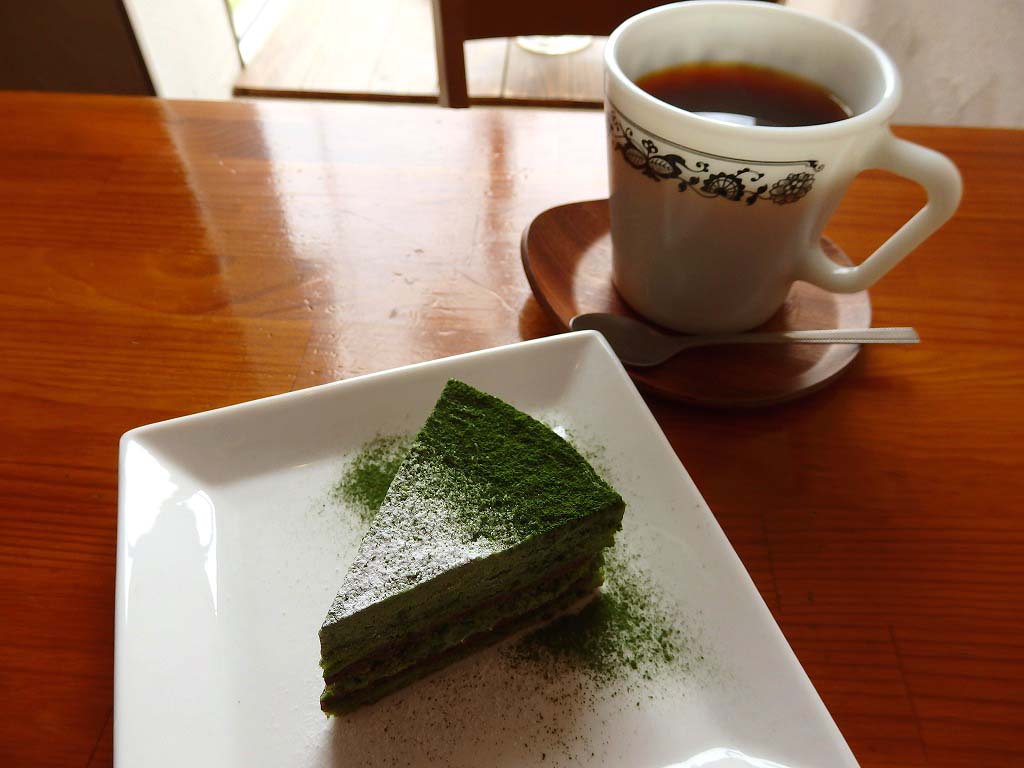 ほんのり甘くて苦い抹茶のケーキが、大人のカフェタイムを演出してくれます…
