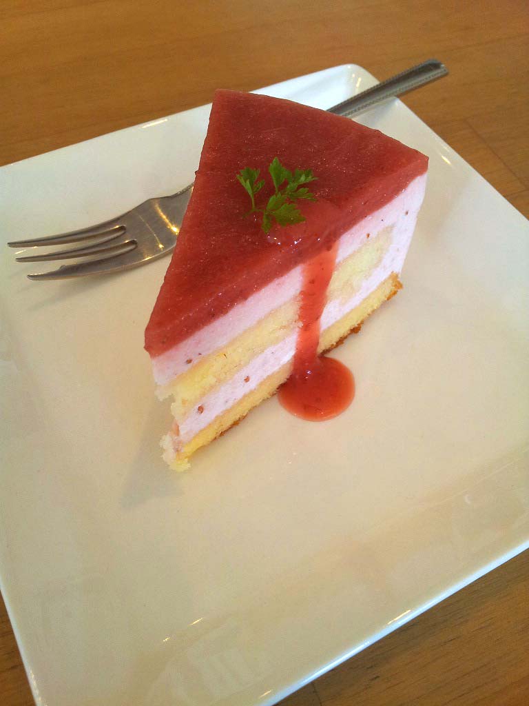 苺の酸っぱさが爽やかで、食感もプルンと涼しげなムースケーキ。