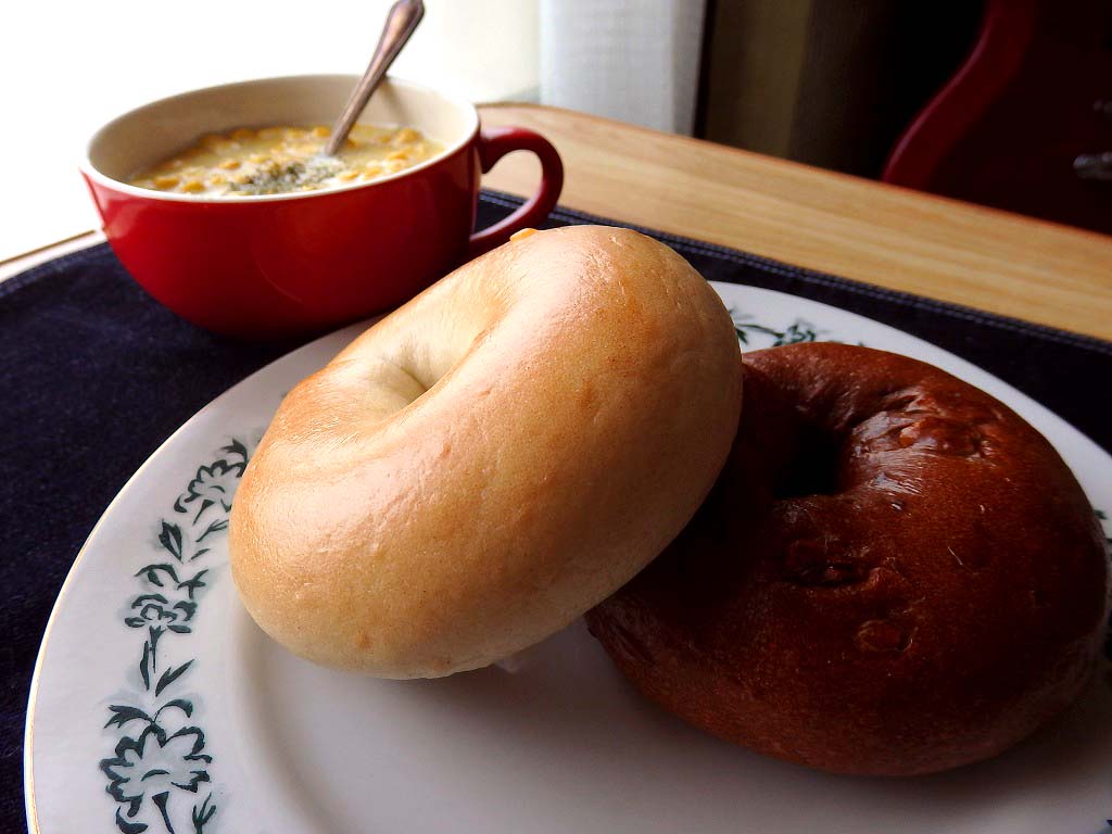 <プレーン、チョコくるみベーグル(合わせて400円弱)。スープは付いてきませんよw>