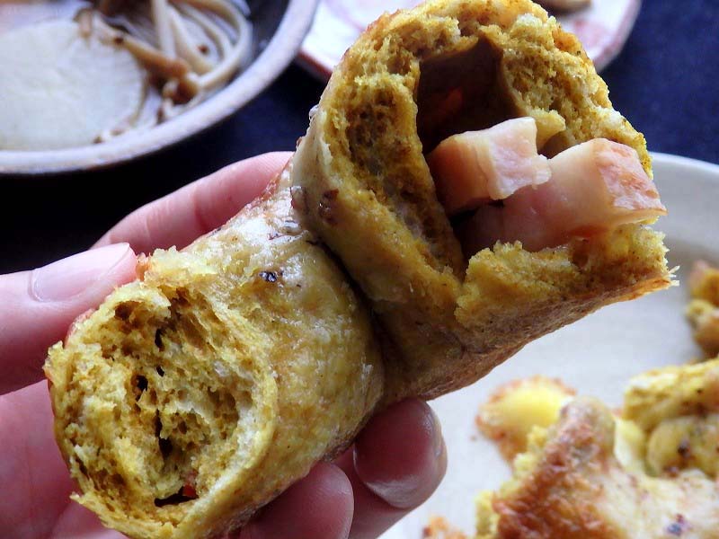 パクッとかぶりつくと意外とピリッとした刺激が舌を刺激し、食欲をそそります。