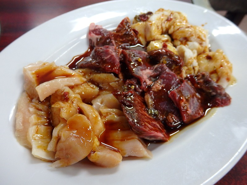 <左から上ミノ、ハラミ、上ホルモン(