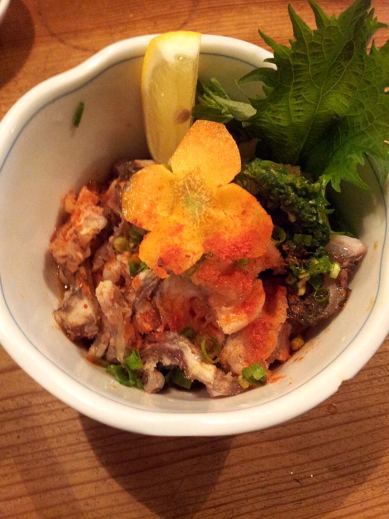 コリコリの魚の皮をぽん酢で和えた皮ポンは、常連さんなら必ず頼むと言って良い