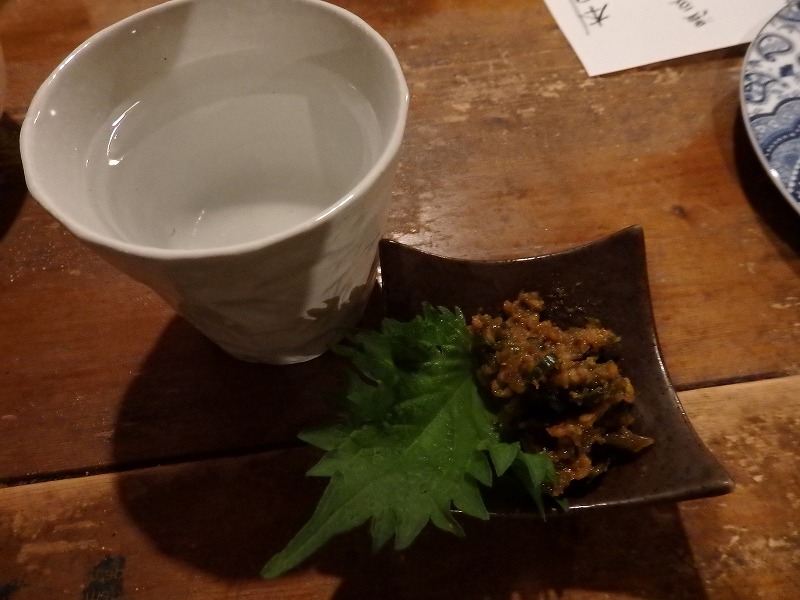 とりあえずのおつまみは鮫軟骨の梅肉和え。少し臭みはありますが、