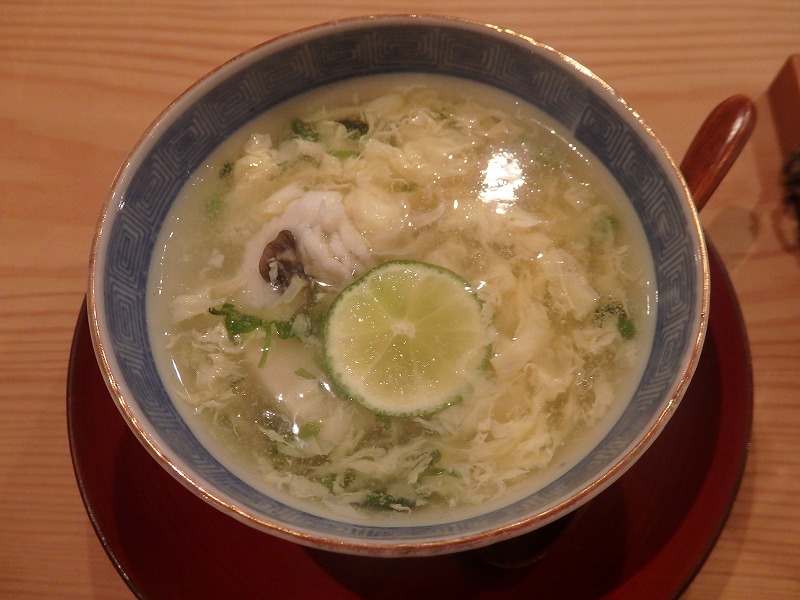 <酒肴コース:ごま豆腐と鱧のスープ>