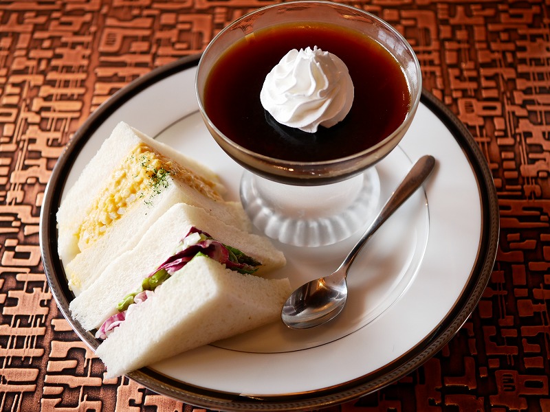 サンドイッチとデザートが付いてきます。デザートのうちの一つがコーヒーゼリーでした。