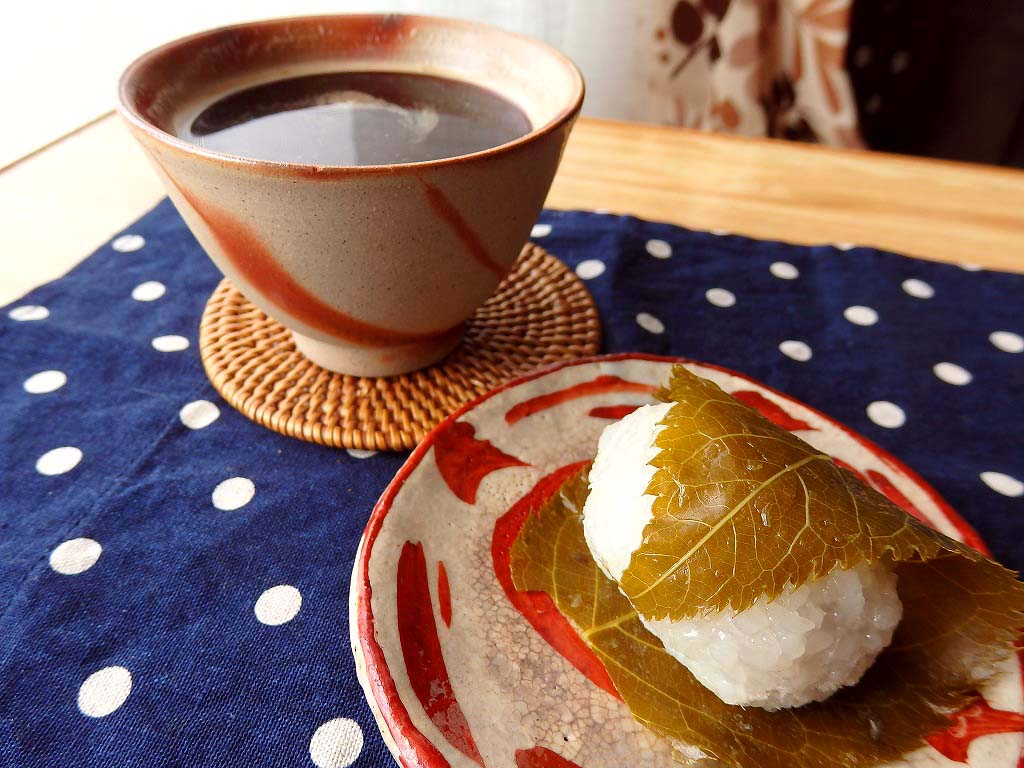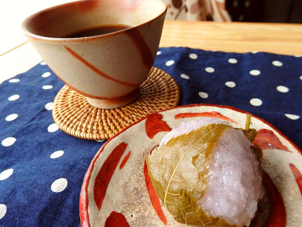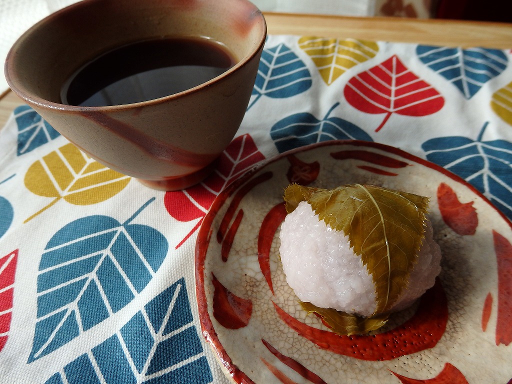 <桜餅の本体は葉っぱ>昔々のナニガシさん(忘れた)がお寺の掃除中、大量に落ちた桜の葉っぱを見て