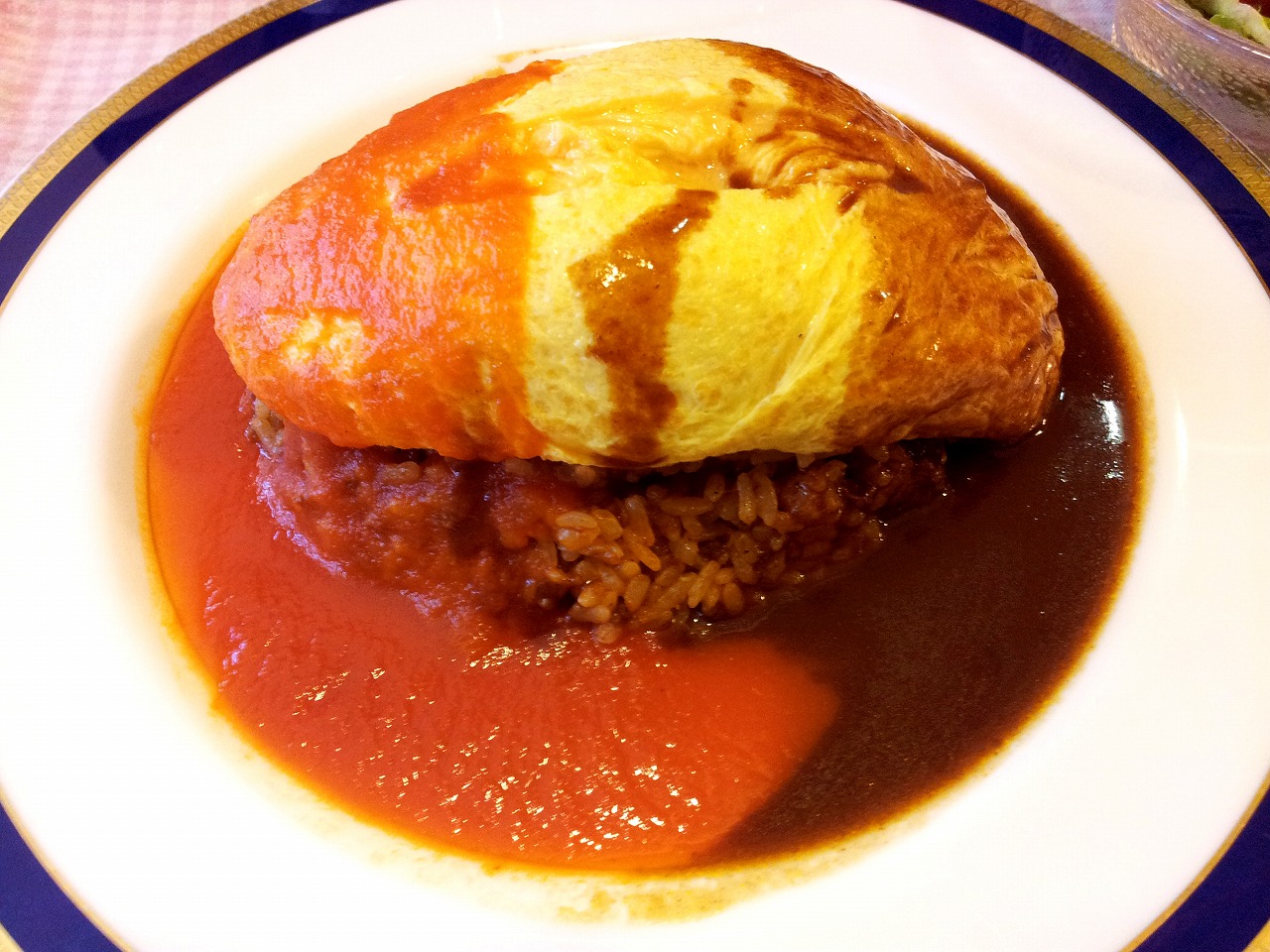 卵のトロトロ感と、牛肉?ミンチと炒めたライス、2色のソースとのバランスがとにかく絶妙で、
