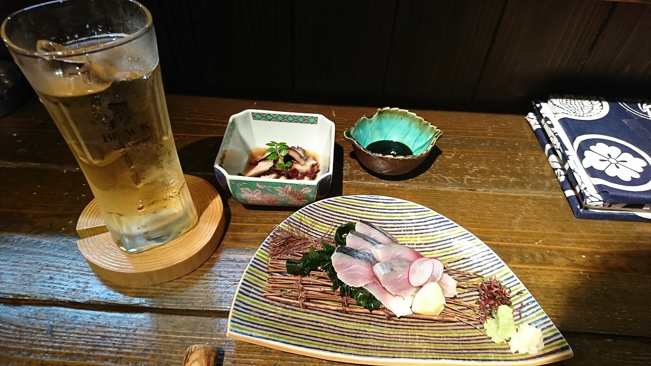 ドリンク、小鉢、お造りのセットで冒険+様子見。