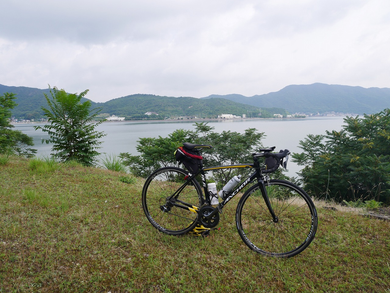 <ちょっとした峠の上から鶴海?牛窓海水浴場?を臨む>