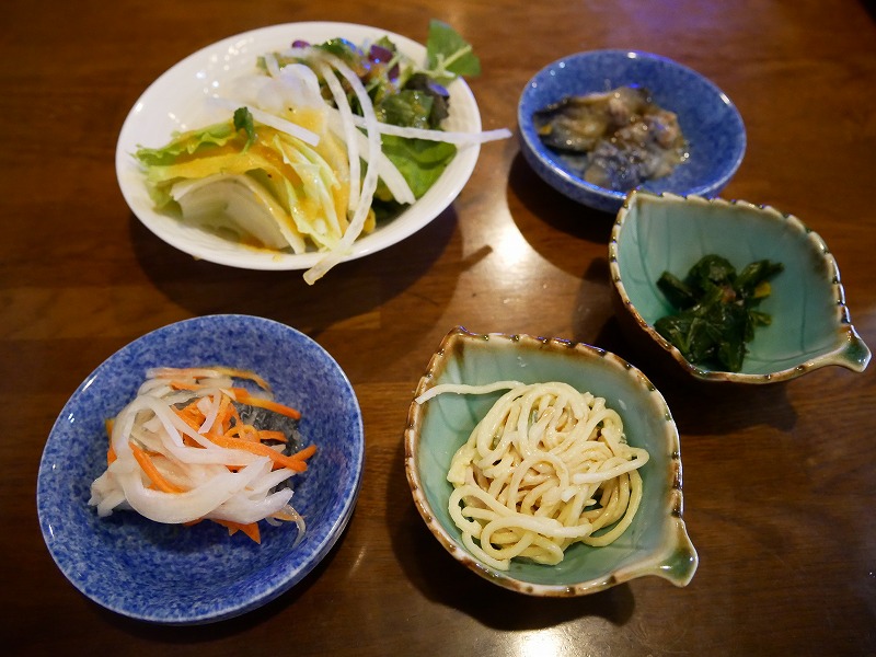 メインを注文と同時に出てくる5種の小鉢、これだけでもご飯1杯行けそうですw