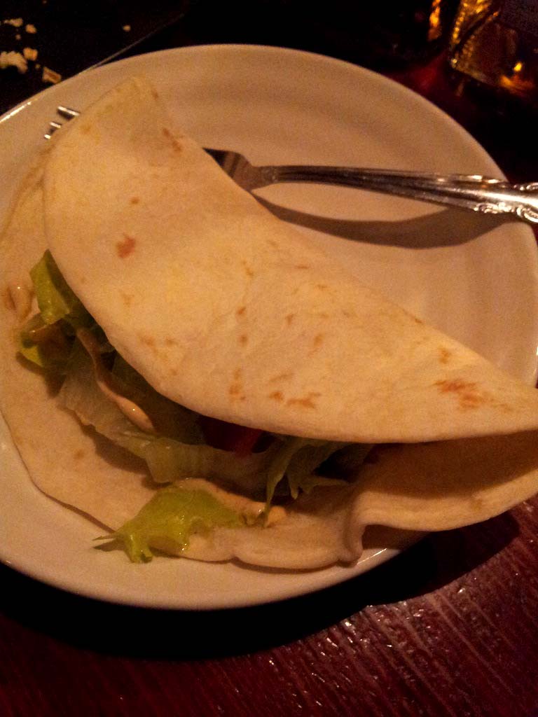 こちらのタコスは、ソフトタイプのタコスに野菜、タコミートとほんのり唐辛子が挟んである