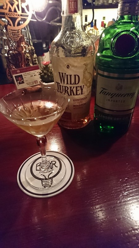 何とワイルドターキー(ウィスキー)とタンカレー(ジン)を1:1で合わせるという、