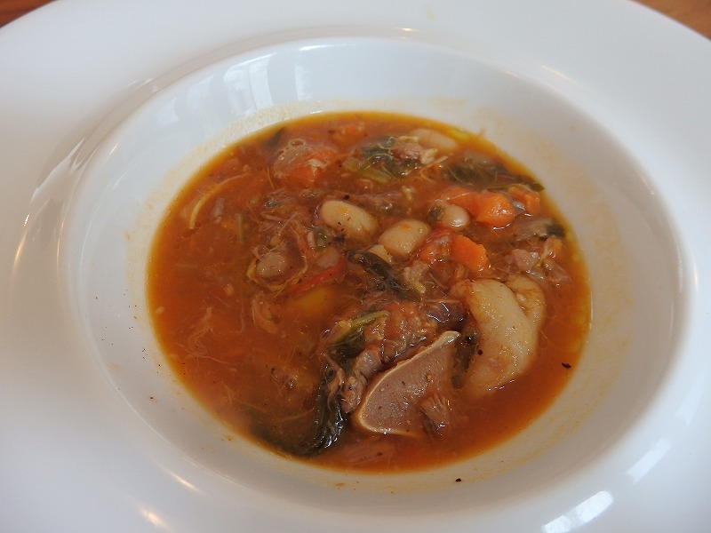 肉の出汁と野菜の甘味が利いたトマトベースの濃厚なスープです。これ美味かった!