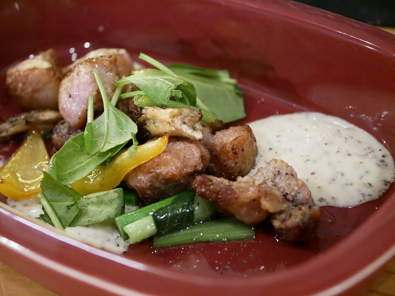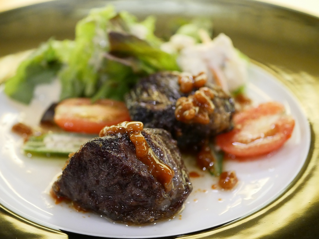 そしてメインはじっくり煮込んだ牛ほほ肉に、粉を付けて外側カリッと焼き上げた一品。