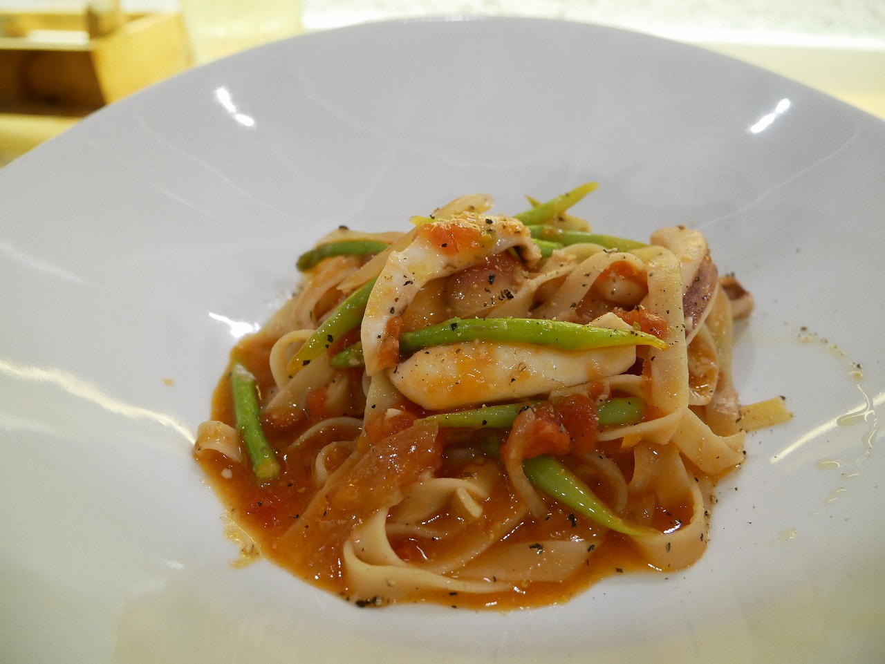 <イカとアスパラのアラビアータ(タリアテッレ)ちょい小盛り>