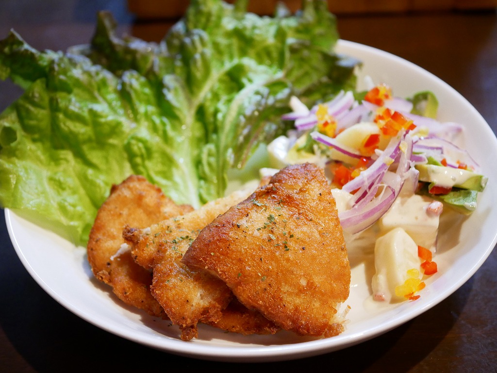 <ミラネーサとポテト、アボカドのサラダ(来週から提供開始。