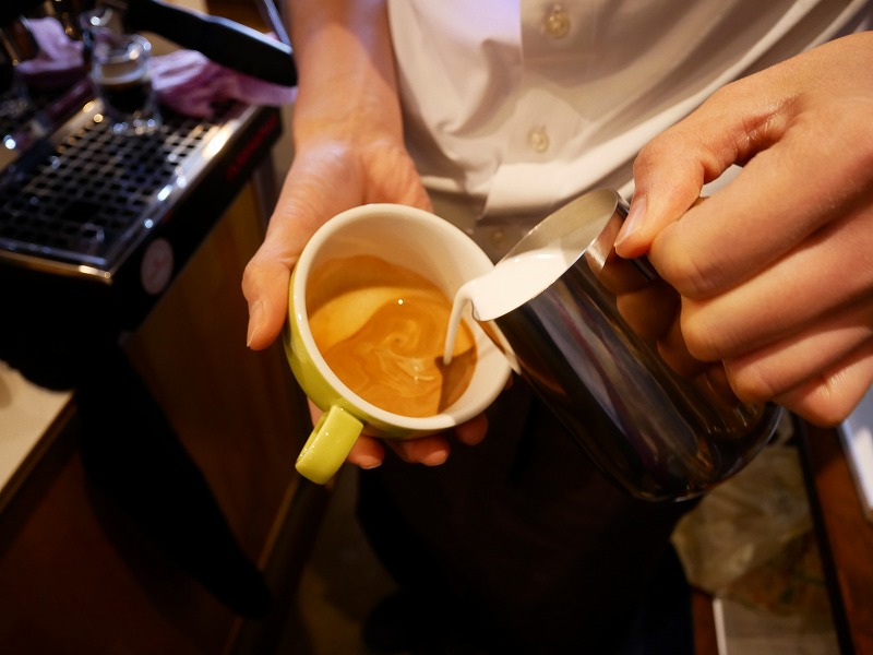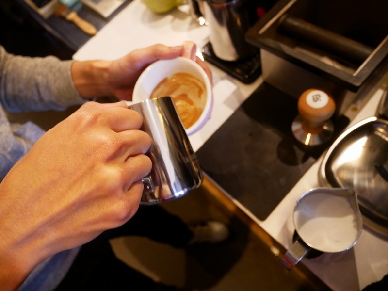 ※撮影+ブログ掲載許可いただいていますし、 ラテ料金+α(気持ち)を支払っていますので念のため!<プロの実演>