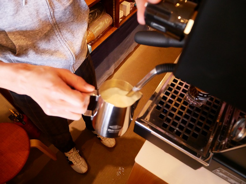 スチーマーの蒸気を一瞬抜いて?からミルクをスタンバイ、