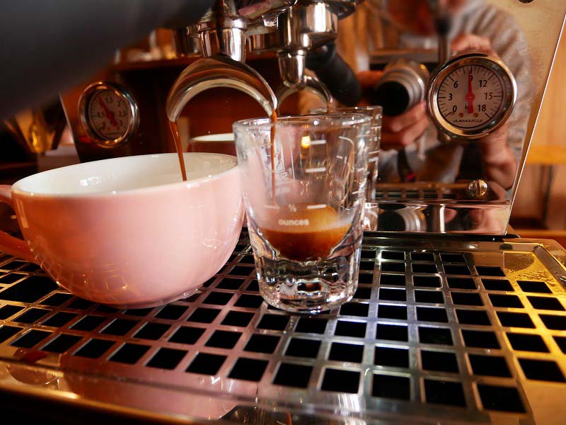 エスプレッソは1オンスより少し多いくらいまで抽出する。