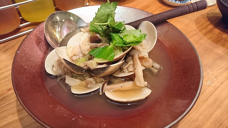 興奮する我々を、しっぽり締め…るどころかさらに興奮させるのは、ハマグリ酒蒸し。