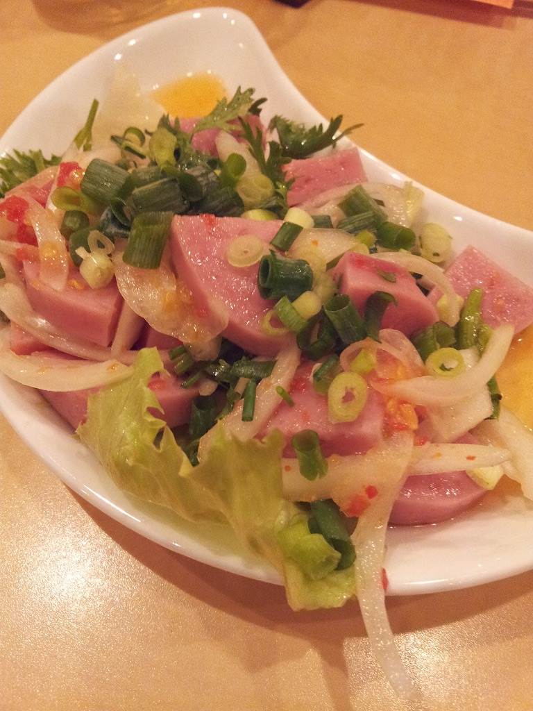 【バンコック】住所 :岡山県岡山市北区田町2-11-1電話 :086-226-3503営業時間:18:00~翌3:00定休日 :無休<タイソーセージのサラダ>