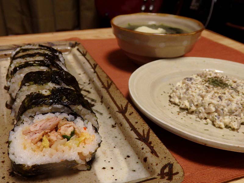 <韓国風太巻き、椎茸のクリチー豆腐タルタル風>