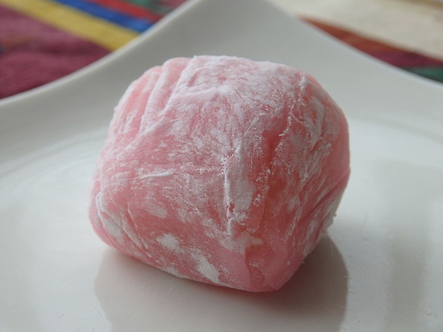 ピンク色のお餅で白餡を包み込んだ、可愛らしい一品。