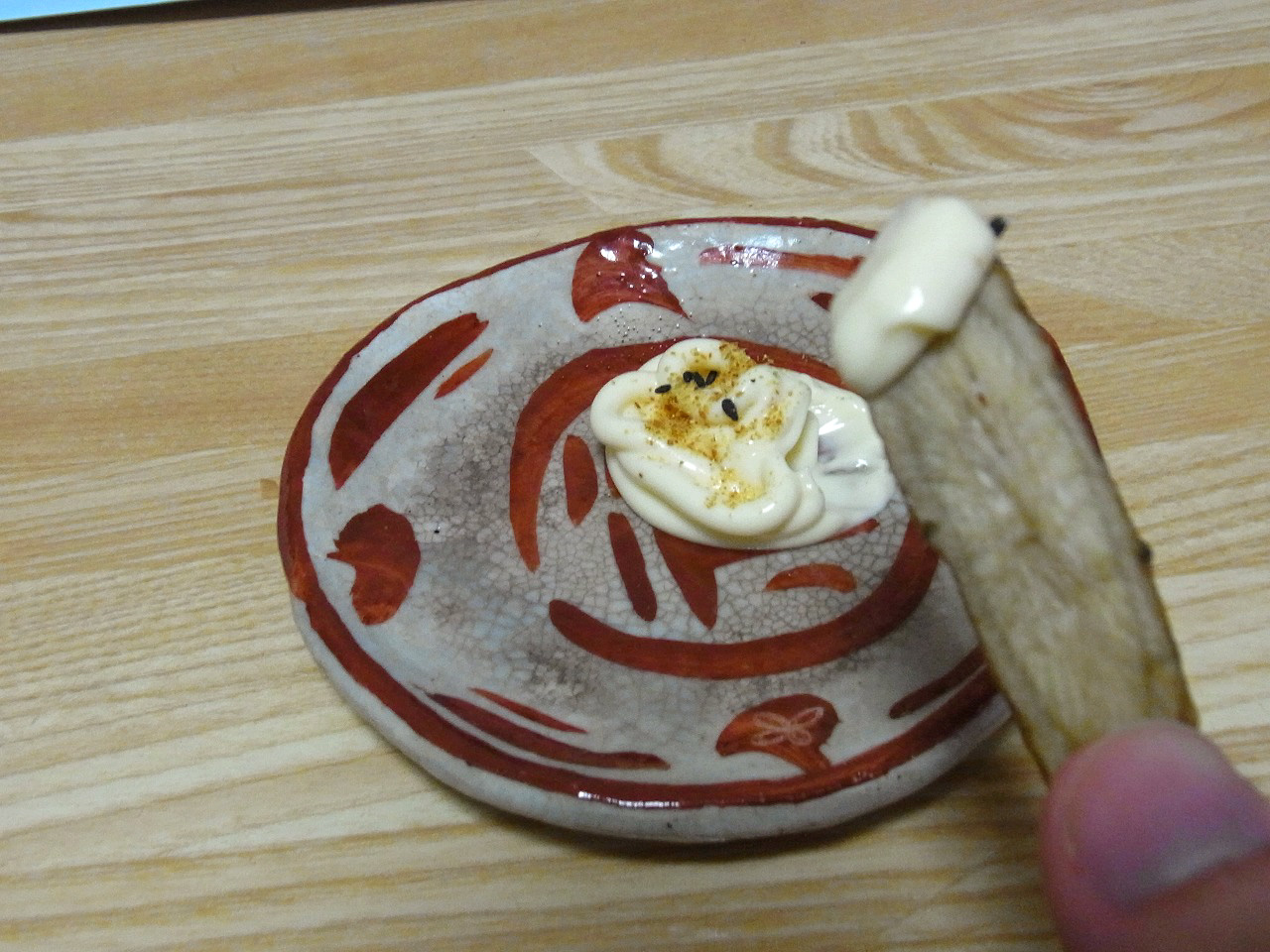 マヨ七味をつけるとめっちゃ美味い!こりゃおやつにもつまみにもなるね!