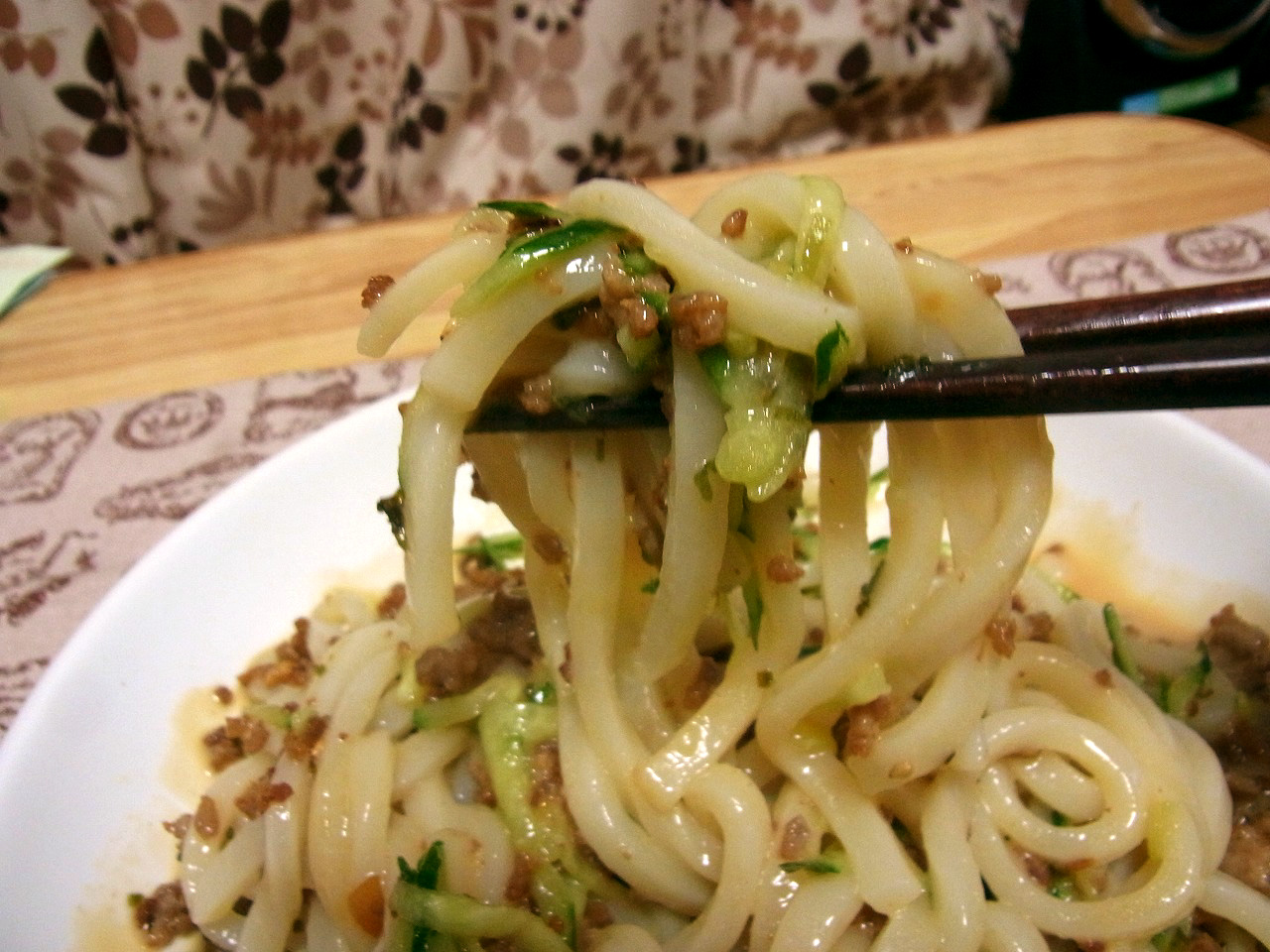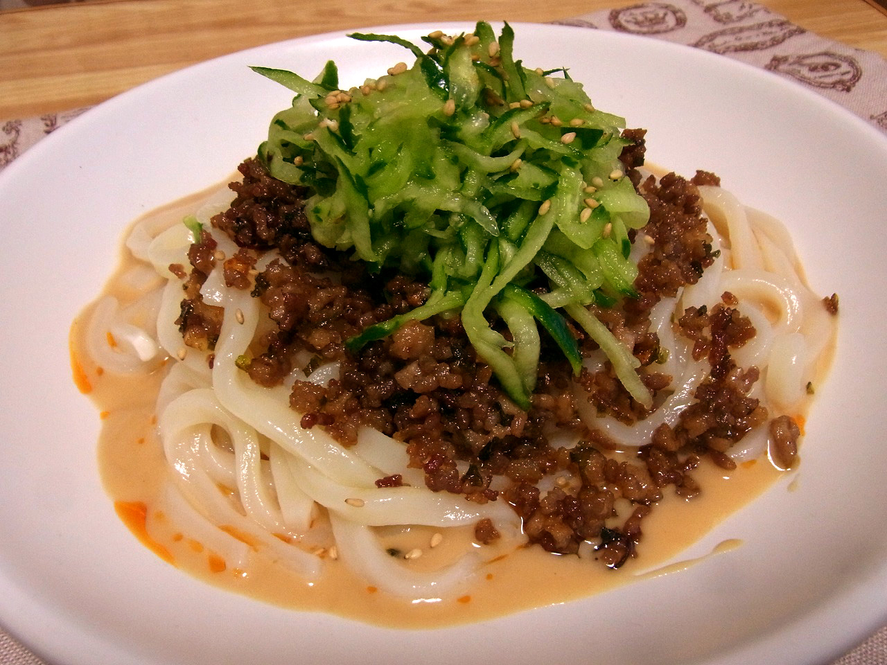 混ぜて食べると、ラー油の辛さがピリッ、ひき肉の脂がじゅわ~、