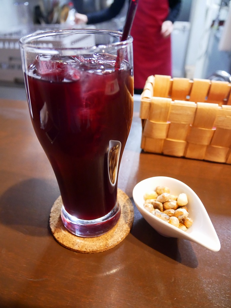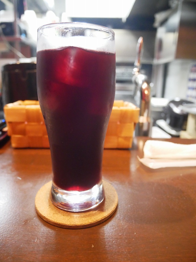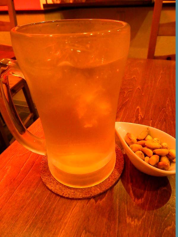 お通しのトウモロコシはカラカラに炒られていて、口の中の水分全部持って行かれーの、