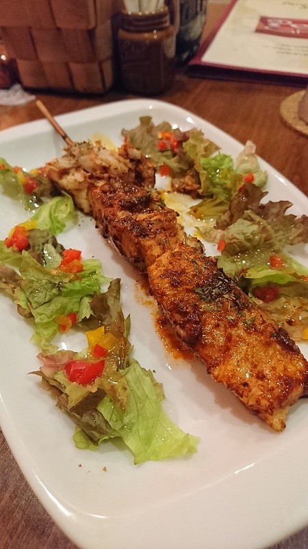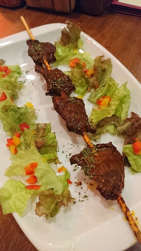 牛ハツ、魚の串焼きのスパイスはローストチキンと同じ物のような気がしますが、