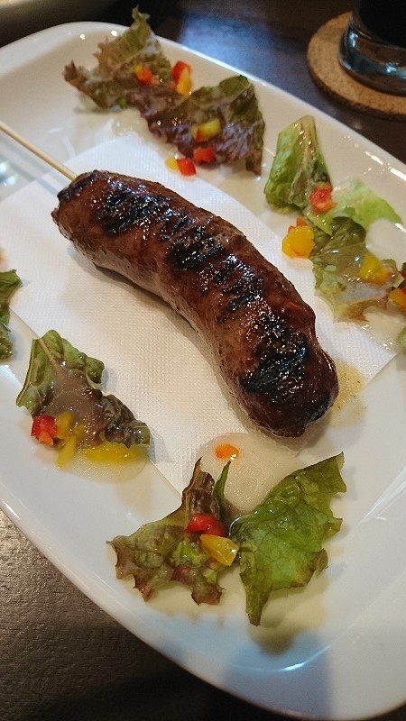 <ソーセージの串焼き