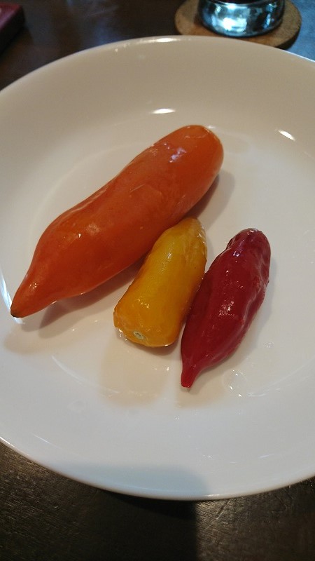 比較するものがないので分かりにくいかもですが、一番左のオレンジの唐辛子は